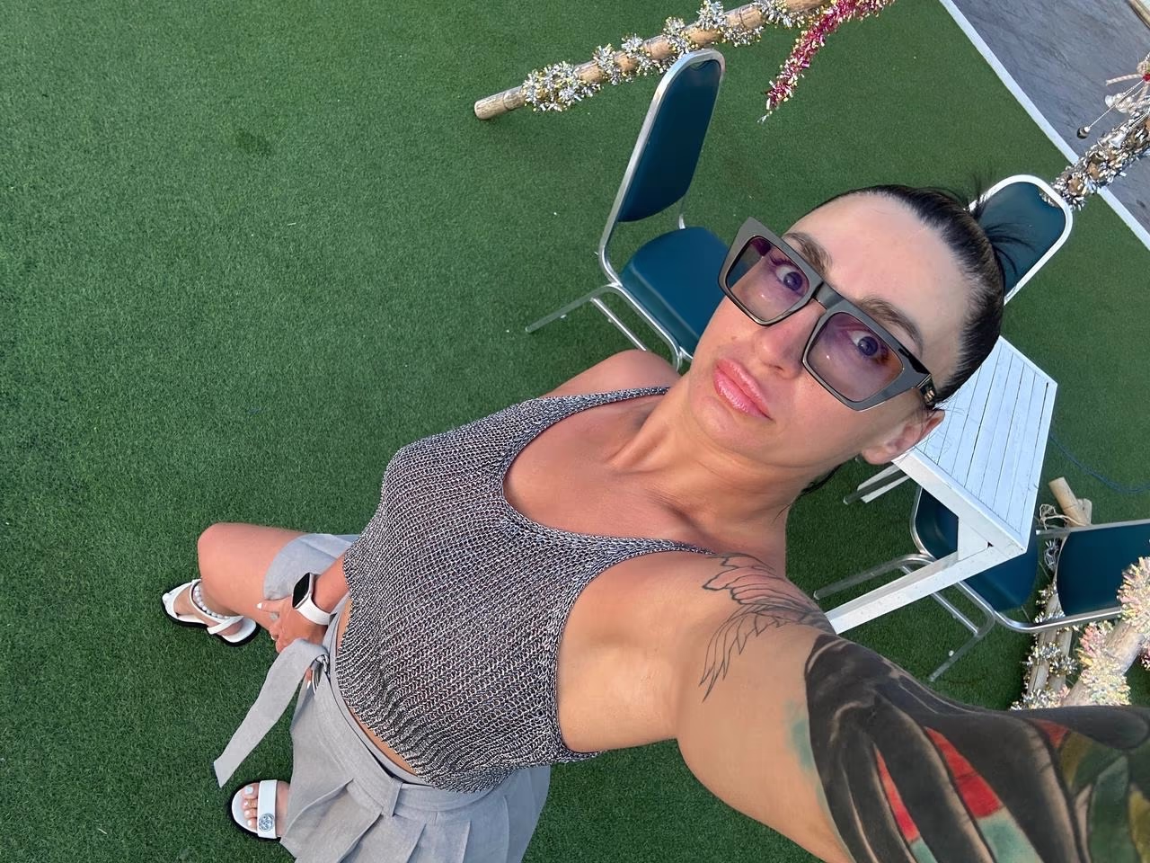 Attention! A real bomb has joined us — Edda! This bitch knows how to drive a man crazy. Look at those legs — they are made to wrap around your waist. A dark-haired beauty with tattoos and a look that says: "I will do everything with you that you are even afraid to dream about." She loves dirty games and is ready to make your most perverted fantasies come true. Edda is not just a meeting, it is an immersion in the world of debauchery, where there are no taboos. She masterfully owns her body and knows how to bring to ecstasy. Do you want to feel like a real male? This wild cat will make you growl with pleasure. Not for the faint of heart! Write to us quickly, before someone else takes up all her time.